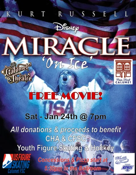 The Movie is FREE ADMISSION but donations are encouraged with all pizza sale proceeds & donations going to support Calumet area Youth Figure Skating & Youth Hockey. Don’t miss this heart warming story of courage and overcoming incredible odds!